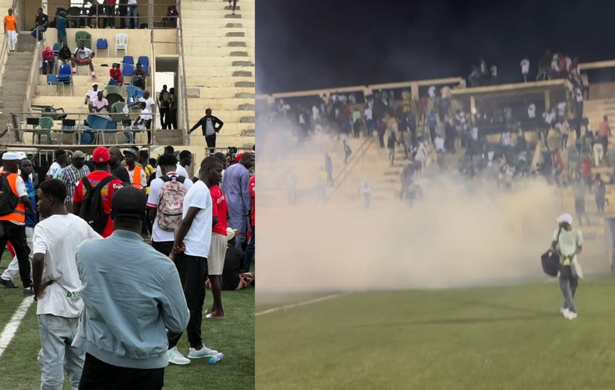 Le stade, bien trop petit pour accueillir la foule venue assister à ce derby de la capitale, débordait de toutes parts.Des spectateurs sont restés à l’extérieur, tandis que d’autres s’entassaient sur les murs et terrasses alentour.Malgré la présence visible des forces de l’ordre, le dispositif sécuritaire s’est très vite montré dépassé.Le premier incident éclate en fin de première période, après un but refusé à l’US Ouakam pour position de hors-jeu.Furieux, certains supporters locaux lancent des projectiles en direction de l’arbitre assistante.Le match est interrompu une première fois puis deux autres avant de pouvoir reprendre difficilement.