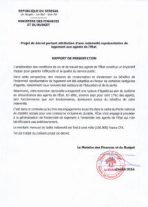 Le président Bassirou Diomaye Diakhar Faye signe un décret pour réduire les inégalités salariales dans la fonction publique Le gouvernement du Sénégal a ainsi franchi une étape importante dans sa politique de justice sociale avec la signature. C’est ce 7 janvier 2026 que le décret n° 2026-06 généralisant l’indemnité représentative de logement à l’ensemble des agents de l’État a été publié. Désormais, tous les fonctionnaires et agents non fonctionnaires, qui ne bénéficiaient pas jusqu’ici de cette allocation, percevront une indemnité mensuelle de 100 000 francs CFA nets d’impôts.
